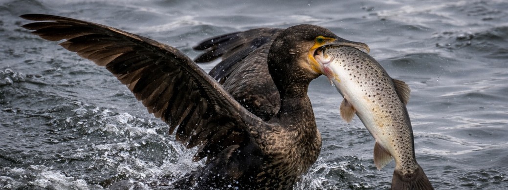 Ein Kormoran frisst im Durchschnitt 300 bis 500 Gramm Fisch pro Tag.